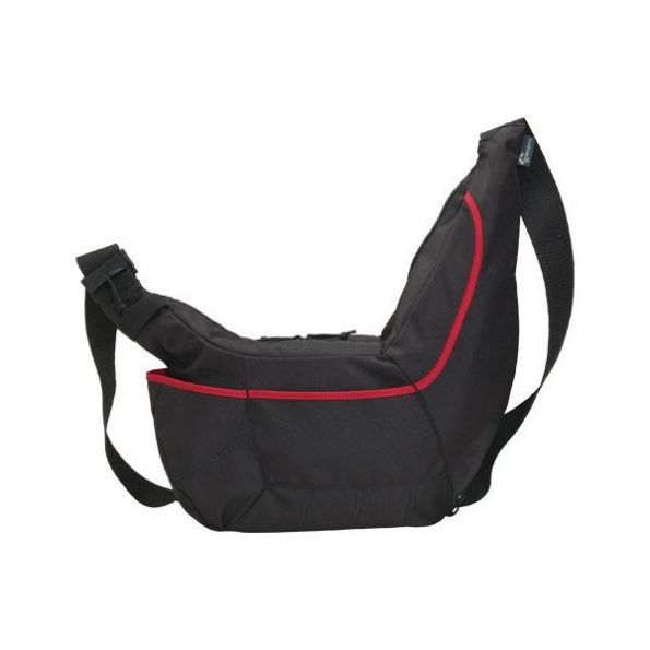 The black/red Passport Sling II Bag from Lowepro is a multi-functional way to carry your photo gear and/or personals. This compact sling can hold your DSLR with attached zoom, one extra lens or flash along with a water bottle and some personal items such as passport, sunglass, ID and tickets. If you use a smaller CSC (compact system camera), it will accommodate the camera with attached zoom, two extra lenses or one lens, one flash plus the same personal items.