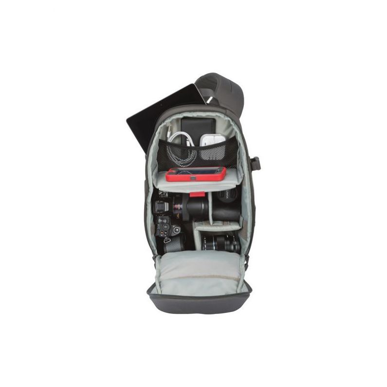 The slate grey Transit Sling 150 AW from Lowepro is versatile travel bag made of weather-resistant 600D polyester. It can accommodate a compact DSLR or a mirrorless camera with a lens attached, as well as accessories and a compact tripod. There is also a dedicated compartment in the back of the bag for a 10" tablet.