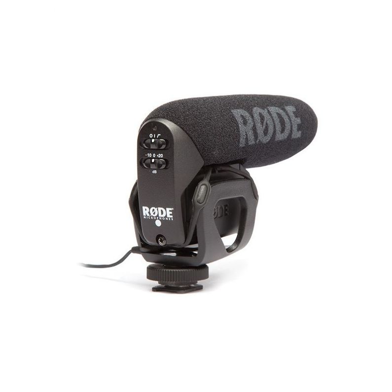 The VideoMic Pro from Rode packs the audio quality and features of the popular VideoMic into an ultra compact and lightweight design that's ideal for use with HDSLR cameras, camcorders, and audio recorders. The microphone has a broadcast-quality condenser capsule with a supercardioid pickup pattern to capture audio from the front, while minimizing pickup from the sides and rear. An integrated shockmount and foam windscreen minimize handling and wind noise to keep your recordings crystal clear.